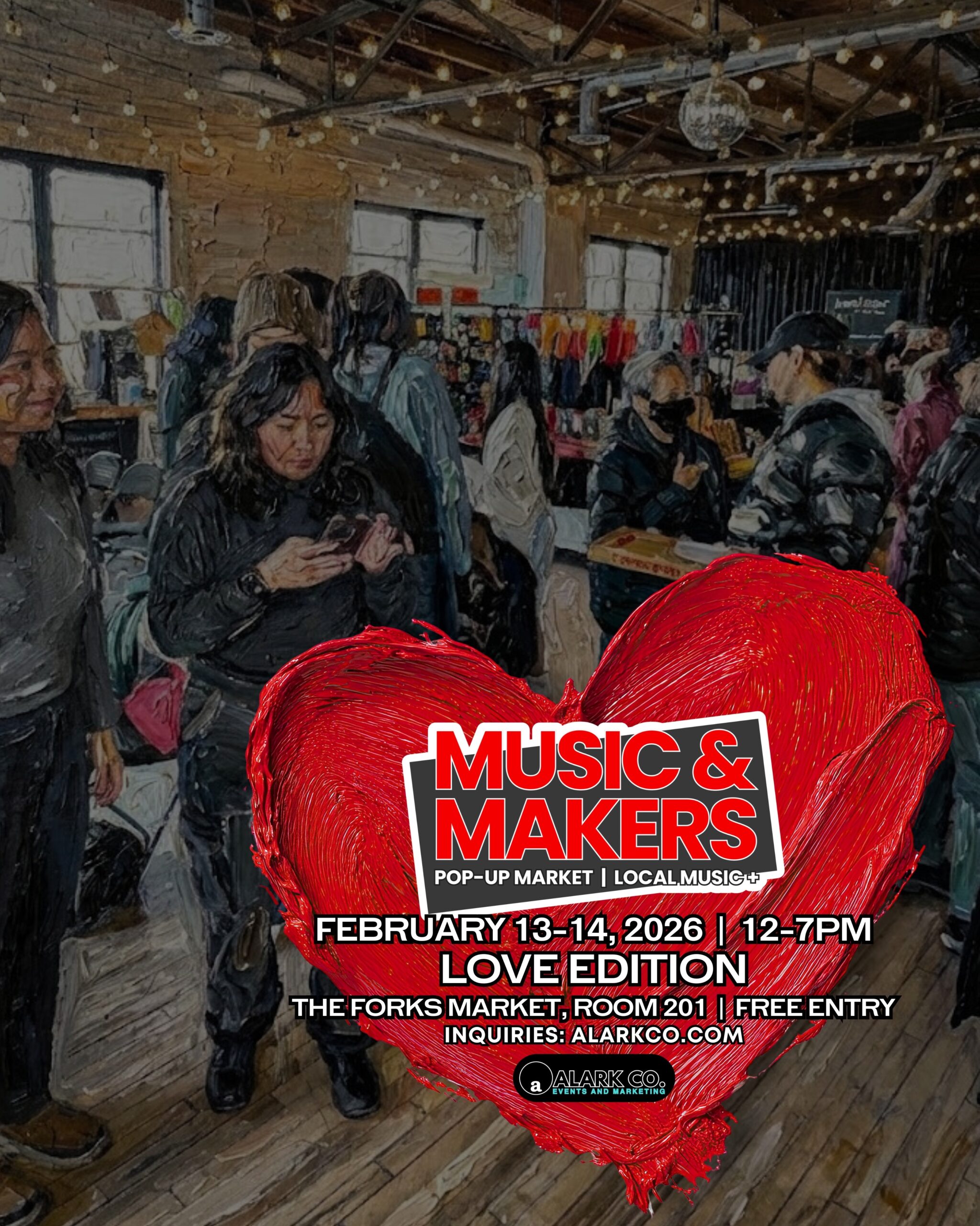 Feb 14, 2026 @ Music & Makers – Love Edition on @ The Forks Market 12p-7p, Room 201.